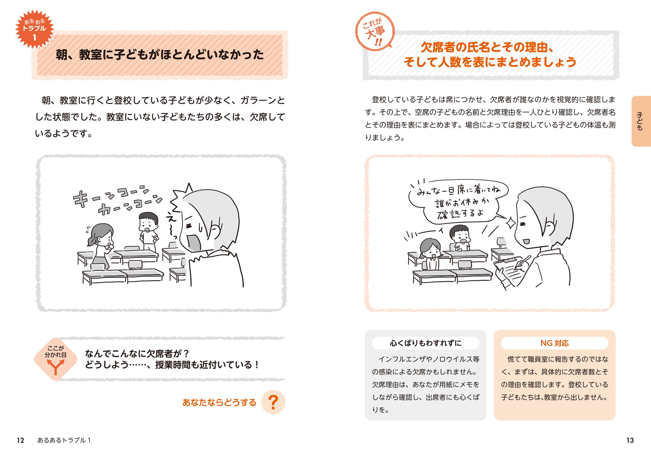 本書では、低学年と高学年をそれぞれ担当する担任が「あるあるトラブル」に遭遇します。