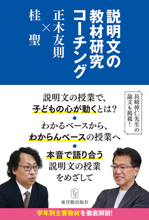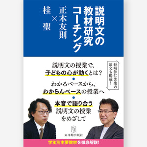 長崎伸仁先生×桂聖先生の『文学の教材研究コーチング』から約十年…。正木友則先生×桂聖先生による説明文編が完成!「説明文の授業で、子どもの心が動く!」「わかるベースからわからんベースの授業へ」「本音で語り合う説明文の授業」を中心に主要教材を徹底解説!