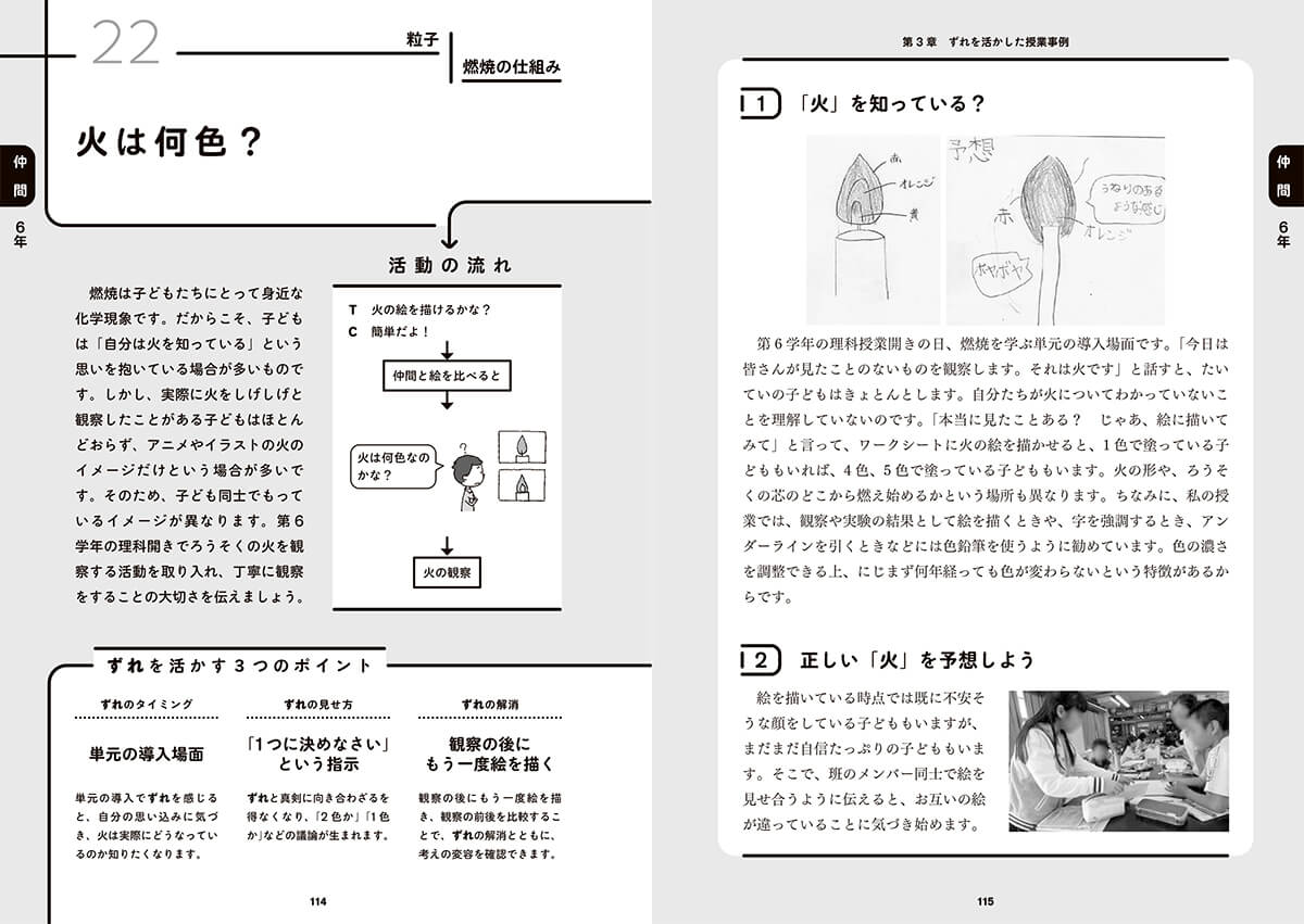 子どもが考え始めるのは、自分の知っていることと違う何かに出会った時。例えば、昆虫の脚が6本だと知っている子がモンシロチョウの幼虫を見たら、「あれ? 脚が16本ある?」と考え始めるでしょう。子どもの思考を促すためには、このような子どもの「あれ?」を引き出す仕掛けを授業に組み込んでいくことが大切です。本書では、「ずれ」を効果的に活用するための3つのポイントを丁寧に解説するとともに、「ずれ」を活かした魅力的な授業事例をたっぷり31例紹介しています。
